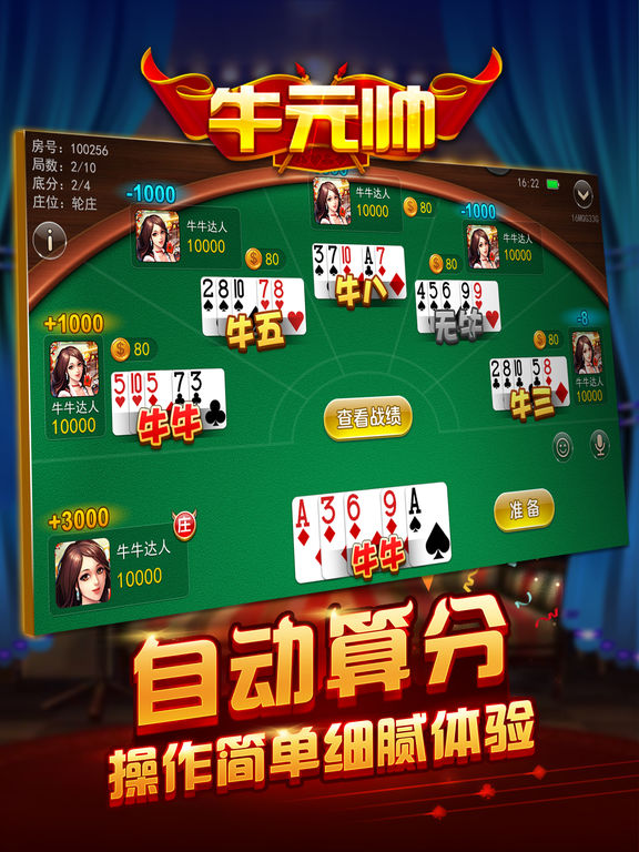 牛元帅 - 最真实,最专注的斗牛社交游戏! 方便快捷的斗牛约局利器,个性化游戏设置,安全、公平、专业的斗牛社交软件,还原真实的斗牛竞技乐趣! 【真实的现场感受】 - 原汁原味的地方性斗牛玩法,场景精美、节奏明快、计算快捷,瞬间让你体验到无穷乐趣 - 手动搓牌,还原现场真实搓牌感受 - 2-6人均可开始游戏,不用担心缺人无法开局 - 游戏中可以随时加入,不用忍受等待之苦,边游戏边等待 - 实时语音通讯,您可以与亲友实时进行语音通讯,还原一起握着手牌聊天的感觉 - 玩家评价,对牌品差的玩家说不! 【专业的技术保障】 - 牛元帅后台采用LINUX系统,是全球运用最广泛、安全、高效的服务器操作系统; - 牛元帅客户端使用U3D引擎,是世界知名多平台综合性开发工具; - 牛元帅采用最具影响力的RSA公钥加密算法,杜绝暴力破解; - 牛元帅采用全服务器校验机制,杜绝一切作弊外挂; - 牛元帅只会给客户端发送他自己的手牌数据,从机制上让看牌类外挂无计可施;