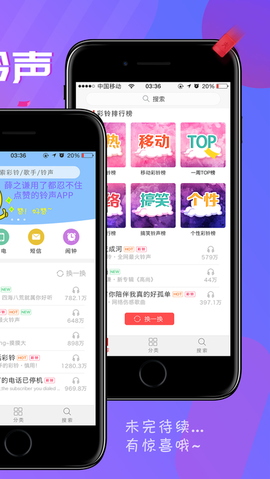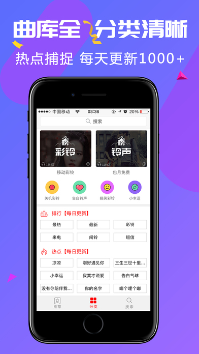 铃声大全-手机铃声多,手机铃声新,手机铃声全,我的手机铃声最好听 铃声大全是一款专注于打造优质手机铃声的APP,铃声大全没有那么多复杂的功能,就是手机铃声又多又好听! 【手机铃声资源多】 铃声大全精选200万首高品质正版铃声,每首铃声都精彩,每首铃声都好听! 【手机铃声内容新】 每日为你更新最热门最流行的手机铃声,铃声好玩到根本停不下来! 【手机铃声任性搜】 强大的铃声搜索功能,轻轻一点,只有你想不到的铃声,没有你找不到的,就是这么任性! 【手机铃声分类赞】 提供多样热门手机铃声分类任你筛选,中文流行、欧美日韩、DJ舞曲、幽默搞笑、网络神曲、影视金曲、游戏动漫、经典老歌一个都不少,轻轻松松玩转手机铃声! 【手机铃声最好听】告别千篇一律的手机铃声,告别枯燥无味的重复铃声,随意选择你喜欢的手机铃声吧,你的手机铃声最独特、最好听! 每日更新1000+好玩好听的手机铃声,更多美妙铃声尽在铃声大全!