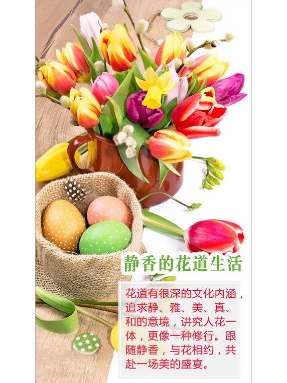 插花教程-插花实用技巧,花艺设计入门 家居插花,一花一草尽悠然,放置案头搁于窗边,你就可以尽情享受一份被幸福质感包围的“花卉慢生活”。 快动手来享受专属的花卉慢生活吧! 一年对应不同的季节和节日,每个新创意都能让你萌生插花的念头,常见的花材和简单的操作让你更容易上手! 不需要特殊的花材和工具,不需要专门的花艺技巧,只需要一点点巧妙的心思,就能周周变换新花样,扮靓家居每一天!