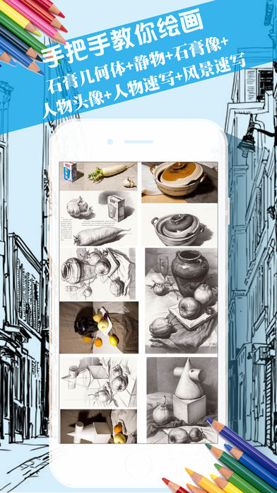 素描简介 由木炭,铅笔,钢笔等,以线条来画出物象明暗的单色画,称做素描。单色水彩和单色油画也可以算作素描;中国传统的白描和水墨画也可以称之为素描。通常讲的素描多元化指铅笔画和炭笔画。素描是一切绘画的基础,这是研究绘画艺术所必须经过的一个阶段。.素描通常采用可于平面留下痕迹的方法:如蜡笔,炭笔,钢笔,画笔,墨水,及纸张等,其它还包括在湿濡的陶土,沾了墨水的布条,金属,石器,容器或布的表面所造成的磨损。 轮廓和线条是素描的一般称谓。素描具备了自然律动感。不同的笔触营造出不同的线条及横切关系和节奏、主动与被动的周围环境、平面、体积、色调、及质感。 素描是一种正式的艺术创作,以单色线条来表现直观世界中的事物,亦可以表达思想、概念、态度、感情、幻想、象征甚至抽象形式。它不像带色彩的绘画那样重视总体和彩色,而是着重结构和形式。