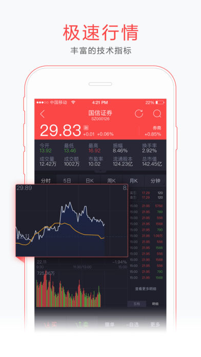 金太阳是由国信证券自主研发的一款全新一站式金融投资理财软件。新版金太阳让您随时随地掌握证券行情、了解财经资讯、进行各种证券交易,成为您随身的投资工具和理财伙伴! 【新版亮点】 1、全新首页:简洁的界面,褪去繁重的视觉压力,方便的快捷入口,让您更容易操作; 2、极速行情:左右滑动快速切换自选、市场、板块,同时调整数据信息让整体更简洁,支持两融标的便捷融资买入、融券卖出,技术采用原生开发技术,让体验更流畅,让您更快把握市场良机; 3、场景交易:重新布局突出资产显示,打造类似“申购宝”场景型交易产品,让您更便捷的使用交易功能,增加“红腰带”提醒功能,让您交易操作领先一步; 4、实时资讯:交互上采用瀑布流形式浏览,导航可快速切换资讯栏目, 新增直播栏目,实时播报,让您更及时的了解最新消息; 5、可视数据:与资讯栏目并列,采用客观的数据,做成图文结合的可视化的图表,一目了然,让你更准确的了解大盘趋势; 6、国信理财:以产品为中心,推出“月薪理财”、“新手专享”系列专题包装进行场景化的理财引导,通过热销和产品相结合,展示国信理财产品系列,同时提供多维度的筛选和标签,让您更快更准确的找到适合自己的理财产品; 7、智能搜索:模糊检索,让您快速定位个股,增加拼音和中文搜索,让您更方便找到您需要的个股; 如果您对金太阳有任何建议或者意见,欢迎您联系我们。 金太阳投资者交流群(号码:210270234) 关注微信:gx-cjg 24小时热线电话:95536 欢迎反馈,我们期待您的声音。 尊敬的投资者:新版金太阳软件Beta版仅向部分用户开放使用,以达到通过用户的反馈不断了解并提高软件的质量和可用性的目的。在新版金太阳软件Beta版的使用期间,若因可能包含的异常或信息不准确之处影响到您的正常操作,请及时使用金太阳手机证券、网上交易软件等其它国信证券所支持的软件进行操作;进行各类委托交易之后,请务必及时通过委托查询了解委托状态;对于使用Beta版所引致的各类损失,国信证券概不负责。
