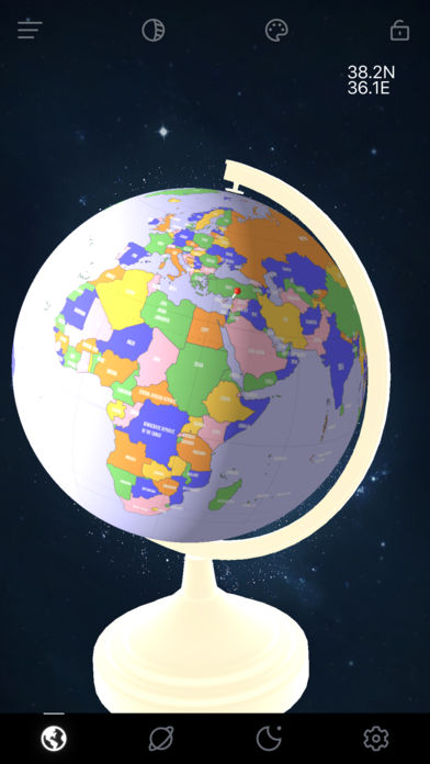 在手机上安装一个3D 地球仪App, 随时随地学习地理知识,世界版图尽收眼底 主要功能: *行政图,地形图,时区图等多种地图样式任你选 *将地图分成白天和黑夜,方便你理解,如果要观察夜晚部分,刻调节光度 *自定义地轴颜色 特点: 三维成像,视觉立体,方便记忆 高清文字图案,世界地图清晰可见 手指触摸即可灵活转动,360度全方位查看,给你流畅的体验 用法: 向左或向右滑动即可旋转地球仪 两个指头在地球仪上张开合拢将缩放地球仪 想要了解更多的宇宙奥秘吗? 我们还附加了地月系,太阳系运行模拟图 赶快开启有趣的世界之旅吧!