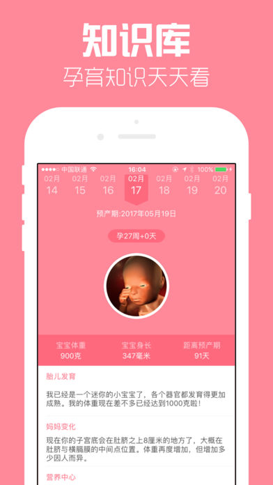 孕期怀孕神器,专业的怀孕期助手工具,百万怀孕妈妈的选择! 胎儿发育每天提醒,让你时刻知道腹中宝宝的发育状态。 妈妈变化能让怀孕妈妈知道怀孕每一天的身体变化,轻松应对各种情况。 更有各种方便的(能不能吃、能不能做等)工具轻松帮助怀孕期妈妈在怀孕期就做好各种准备。 怀孕管家的特色功能有: 【超方便】每天独有宝宝变化和妈妈变化提示,让怀孕妈妈更了解宝宝和自己。 【超实用】孕育百科提供各种知识,轻松应用从备孕,怀孕,育儿等个个时期遇到的问题 【超好用】能不能吃、能不能做、等特色小工具应有尽有 【超快捷】更有贴心的提醒每天提醒怀孕妈妈注意事项,更能告知腹中宝宝状态。