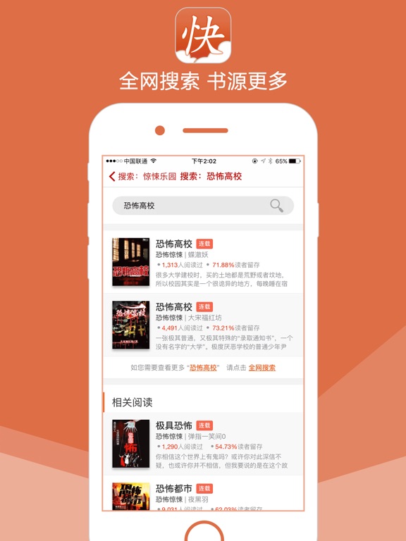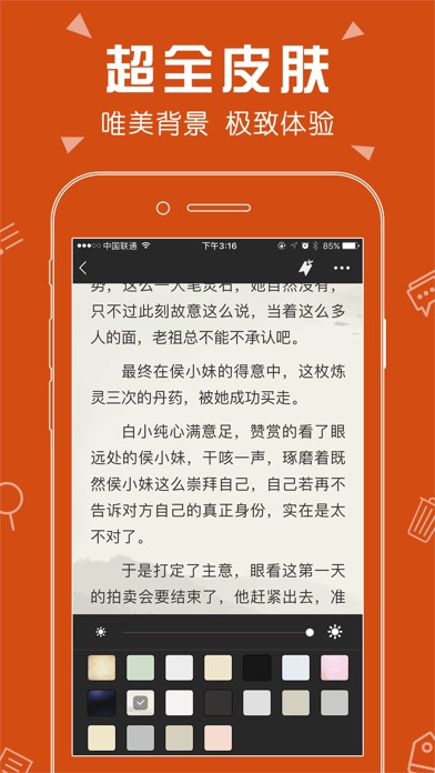 最专业的小说阅读器 他有着最丰富的小说资源,最优质的小说内容,最全面的小说类型,最舒适的阅读体验,只为成为你身边最亲密的阅读小伙伴儿。 【特色功能】 海量资源:来自互联网海量小说搜索资源,即搜即得; 优质内容:大量完结、连载、出版小说,同时提供高品质听书资源,品质最优; 全面的小说类型:玄幻、都市、言情、武侠、科幻、军事、职场励志,应有尽有; 舒适的阅读体验:多种阅读主题、夜间模式、翻页效果,随意切换阅读页横竖屏; 实时的小说更新:连载小说,更新提醒,第一时间获取最新章节,随心阅读; 电脑传书:电脑手机同时阅读,支持EPUB、PDF、TXT、UMD格式,想传就传。