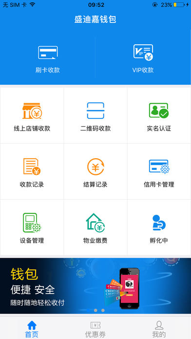 盛迪嘉钱包是广东盛迪嘉电子商务股份有限公司推出的一款具有科技创新理念的收单工具,帮助个人及中小微企业实现快速收单。盛迪嘉钱包通过蓝牙实现POS机与APP链接,流程操作简洁,功能简单实用,是一款服务用户的移动端“随身”钱包,以极致的产品体验,帮助用户实现“及时收款、便捷支付”。 主要用于闪付、磁条以及IC信用卡,储蓄卡收单,结算卡查余额,收单流水账单等功能。 实现方式:下载盛迪嘉APP,通过手机蓝牙将POS机与APP链接,即可进行刷卡支付。 特点: 1、 安全:拥有支付牌照,系统安全可靠 2、 稳定:拥有经验丰富的产品技术团队,保障系统稳定、安全运行 3、 及时:资金到账快,可实现秒到、以及T+1结算 4、 查询:通过APP实现实时查询交易流水 5、 记录:记录交易与提现的每一笔交易来往 6、 便捷:外观精巧,携带方便,支持银联