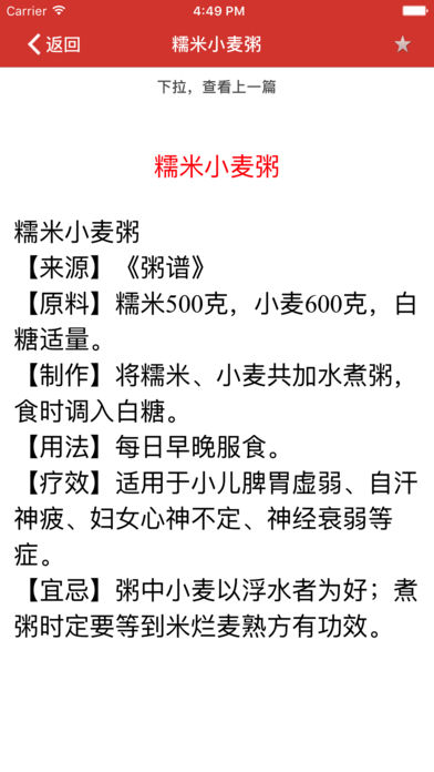 【中国粥文化】 在中国有文字记载的历史中,粥的踪影伴随始终。关于粥的文字,最早见于周书:黄帝始烹谷为粥。 中国的粥在四千年前主要为食用,2500年前始作药用,《史记》扁鹊仓公列传载有西汉名医淳于意(仓公)用“火齐粥”治齐王病;汉代医圣张仲景《伤寒论》述:桂枝汤,服已须臾,啜热稀粥一升余,以助药力,便是有力例证。 进入中古时期,粥的功能更是将“食用”、“药用”高度融合,进入了带有人文色彩的“养生”层次。 宋代苏东坡有书帖曰:夜饥甚,吴子野劝食白粥,云能推陈致新,利膈益胃。粥既快美,粥后一觉,妙不可言。南宋著名诗人陆游也极力推荐食粥养生,认为能延年益寿,曾作《粥食》诗一首:“世人个个学长年,不悟长年在目前,我得宛丘平易法,只将食粥致神仙。”从而将世人对粥的认识提高到了一个新的境界。 可见,粥与中国人的关系,正像粥本身一样,稠粘绵密,相濡以沫;粥作为一种传统食品,在中国人心中的地位更是超过了世界上任何一个民族。 【喝粥的好处】 1.容易消化。白米熬煮温度超过60摄氏度就会产生糊化作用,熬煮软熟的稀饭入口即化,下肚后非常容易消化,很适合肠胃不适的人食用。 2.增强食欲,补充体力。生病时食欲不振,清粥搭配一些色泽鲜艳又开胃的事物,既能促进食欲,又为虚弱的病人补充体力。 3.防止便秘。稀饭含有大量的水分,平日多喝粥,除能果腹止饥之外,还能为身体补充水分,有效防止便秘。 4.预防感冒。天冷时,清早起床喝上一碗热粥,可以帮助保暖、增加身体御寒能力,能预防受寒感冒。 5.防止喉咙干涩。对于喉咙不适、发言疼痛的人,温热的粥汁能滋润喉咙,有效缓解不适感。 6.调养肠胃。胃功能较弱或溃疡患者,平日应少食多餐、细嚼慢咽,很适合喝稀饭调养肠胃。 7.延年益寿。喝粥可以延年益寿,五谷杂粮熬煮成粥,含有更丰富的营养素与膳食纤维,对于年长、牙齿松动的人或病人,多喝粥可防小病,更是保健养生的最佳良方。