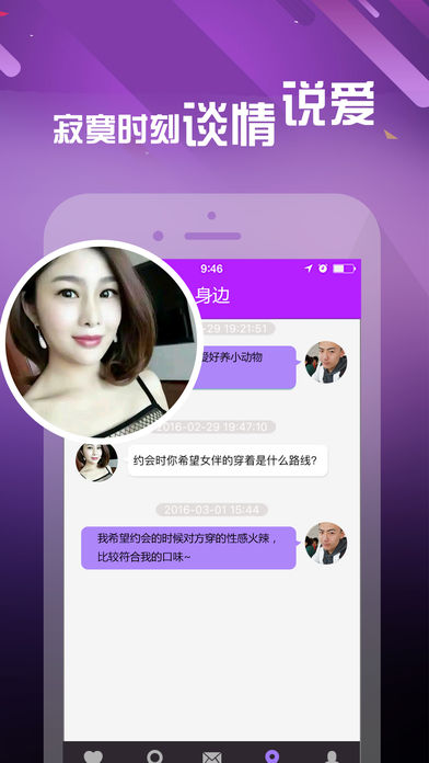 享恋是专为谈婚论嫁的男男女女搭建的社交平台。这是一款新流行的恋爱约会软件,人气爆棚的脱单神器,海量单身帅男美女正在用,在线互约,就差你了! √附近:基于地理位置的陌生人交友,可浏览所有异性照片,看到心仪对象即可选图进入个人页面进一步了解、并且与对方say hi聊天! √搜索:不仅是地点、年龄,更可以根据你的搜寻习惯,精准匹配,更能有效地找到你感兴趣的对象! √缘分:喜欢TA?就可以免费给他打招呼,让TA知道你的爱意 √信箱:和你的心上人进一步交流,建立感情的桥梁 √谁看过我:来看过你档案的会员都会在这里看到,说不定里面也有你暗恋的人哟! 无论你是渴望恋爱还是期盼结婚, 无论你想排解身心寂寞还是打发空虚无聊, 无论你是同城交友还是异地寂寞, 史上互动率最高的陌生人交友社区,帮你找到想要的TA!还等什么?赶快下载吧!