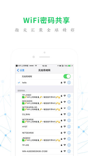 WiFi上网神器是全球最大的网络共享互助平台之一,基于万能的共享经济模式,帮助用户自动查询周边开放公共WiFi热点信息,一键连接共享网络,是苹果手机必备的WiFi上网工具。 WiFi上网神器为您提供: * 一键连接,WiFi上网 * 覆盖全球的WiFi热点,随时随地WiFi上网 * 运营商热点任你连 * 全国千万运营商热点任你连。 WiFi上网神器致力于为用户提供最好的WiFi上网服务,帮助用户最大化使用各种联网的移动服务。随时随地轻松接入无线网络,最大化使用各种联网移动服务,告别无网断网状态,是您更佳的WiFi连接工具。 WiFi上网神器致力于为用户提供最好的WiF…