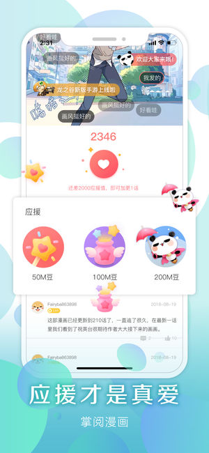 百部独家新作蓄势待发,千部漫画限时免费看,更有全民偶像王俊凯陪你一起看漫画,给你的不止是好看~~ 应援真爱作品即可提前加更,还有机会获得特殊身份,解锁专属头像框和弹幕特效~ 【版本更新】 1.【应援打call】催更大变身!应援榜等你来战!不仅能加更,还能获得专属身份特权! 2.【M星商城】一大波限量周边来袭!出手晚了可就只能等下波啦~ 3.【个人空间】想要对小姐姐&哥哥了解的更多?现在就点击“头像”行动吧! 4.【弹幕UP】全新弹幕,彰显你的“尊贵”! 5.【无缝阅读】阅读体验0缝隙,就是给你好看!