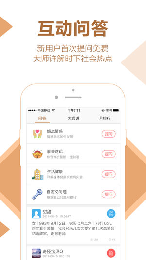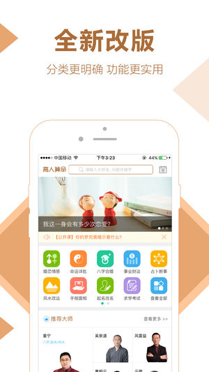 高人算命平台收集了各路民间八字算命高手,通过生辰八字组合出您的先天命局,算命大师将会详细为您解答各类问题,配合六爻八卦,精准分析您的未来运程,让您把握十年大运,提升工作事业、婚姻家庭、爱情桃花、财运官运、健康疾病等运势。 平台将提供最新2017年运势分析,提前预测分析您的流年运程,掌握最新的运势走向,为您的未来提前做好准备,让您始终快人一步,准确把握机遇,创造属于您的未来。 与此同时,八字算命大师还将为您提供八字详批、风水改运、手相面相、公司起名等服务。 高人算命平台邀请众多国内知名玄学大师,帮助大家提供咨询服务,给大家在人生迷茫的时候指点迷津,弘扬国学文化。 算命大师主要分布在北京、河…