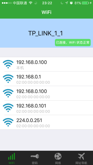 WiFi 上网必备! *扫描WiFi网络* 监控所有连接到当前WiFi的设备, 分析IP地址, 设备名和厂商, 供安全分析。防止被别人蹭网。 *WiFi 密码查看器* 轻松添加密码,随时随地查看。 *网址导航* 涵盖上百个网址,满足广大用户上网需求。