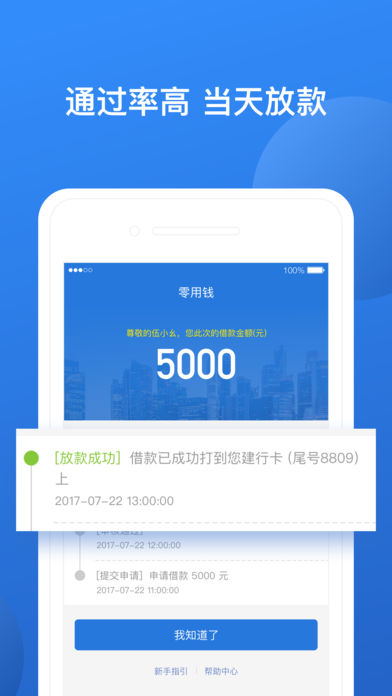 51零用钱,近乎无门槛,极速放款,解救月光族。 【什么是51零用钱】 51零用钱是一款快速便捷的现金贷款产品。 无需抵押、纯信用、纯线上,轻松三步,即可快速借款。 【51零用钱的优势】 放款快:审批通过后最快5分钟到账 。 门槛低:只需提供身份信息,即可快速借款 ! 灵活借:一次申请,额度长期享用。额度将持续提升。 人群广:支持工薪族、个体户、蓝领人群,工作内容不限! 【轻松三步,搞定借款】 申请借款——资料认证——极速放款 【雄厚实力】 C轮融资近4亿美金 2016胡润新金融50强 福布斯中国互联网金融50强 中国互联网金融协会首批会员单位 杭州互联网金融协会副会长单位 【联系我们】 如您在使用过程中遇到任何问题,可通过下述方式查询和反馈: 1、用户反馈:首页-更多-意见反馈 2、客服QQ:800080960 3、客服电话:4008705151