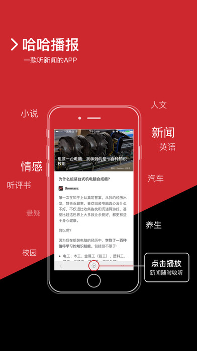 • 没错!“哈哈播报”就是您的【任务助手】,请放心下载! 提醒:下载后使用时请全程打开“哈哈播报”哦。 • iOS 10用户请点击允许应用访问数据。如果未提示「是否允许应用访问数据」,无法正常使用应用的解决方案:在「设置」-「蜂窝移动网络」打开「无线局域网助理」选项,之后再重新打开应用即可解决这个问题。 哈哈播报——让新闻有“声音”。 哈哈播报——让新闻有“态度”。 • 你认可的人,为你筛选:你认可的人,要比机器更可靠。发现你认可的主编和日报,根据他们的品味,为你筛选内容。 • 推荐语更好看:吸引你的,除了标题,还有更有趣的推荐语,可能比原文更好看。 • 简单清晰的阅读体验:一键切换「阅读模式」,与正文无关的内容通通消失,让阅读更轻松