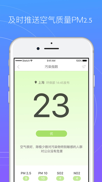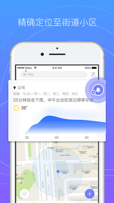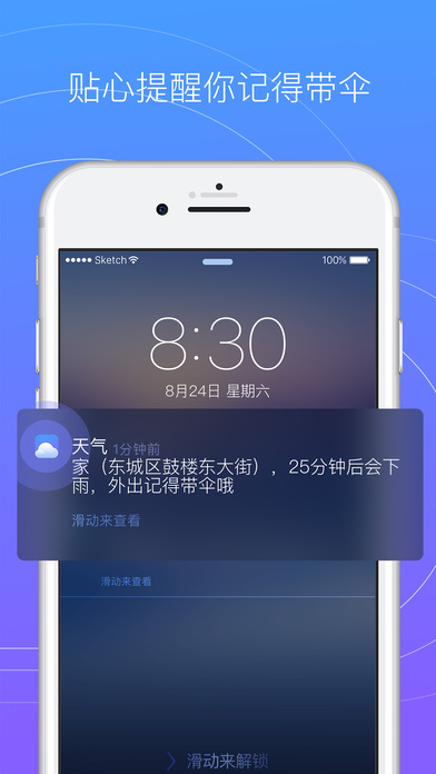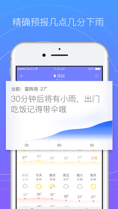 专为 iPhone 设计的天气 app,为你提供实时温度、空气质量,15天气预报。 【官方权威数据】 精准定位你当前所在位置天气情况,覆盖全球300万城市,全国40000多个城镇的天气预报。无论您身处国内还是国外,大城市还是小乡镇,都会给您带来准确的天气预报,为您的出行保驾护航。 【颜值清新脱俗】 同类APP中独特的小清新风格,直观感受天气变化; 【强大天气推送】 短时降雨、今日明日天气预报、灾害预警即时送达; 【全国空气质量指数】 AQI、PM2.5雾霾提醒,城市空气全国排名,为你出行、跑步等提供专业意见; 【精确的2小时降雨预报】 降雨地点:定位至街道、小区,家、公司、学校…降雨情况全部掌握; 降雨时间:精确至分钟,几点几分下雨,几点几分停雨; 贴心提醒:不用打开APP就有消息通知你,要下雨了记得带伞哦; 【天气变化从容应对】 今日天气:实时发布天气实况,未来24小时天气变化,1日出行无忧; 15日天气:超长预报15日天气变化、气温趋势,冷暖早知道。