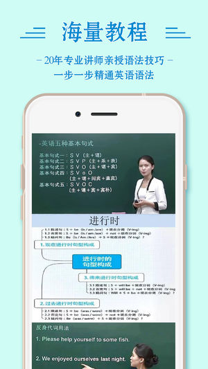 英语是全世界适用范围最广的一种语言,很高兴你能下定决心学习。本文将带领你从零开始,一步一步走入英语的世界。有音标、基础词汇、入门语法学习,也准备了从零开始自学英语的方法,你准备好了吗? 初级英语将基本语法穿插于句子的学习之中,并设计了实际场景对话,内容生动,方法科学,侧重于教您英语基本会话,内容涵盖历史,经济,文化,日常生活,社会交往,涵盖全面。 软件特点: ①:看图学单词,看图测试,语音文本同步朗读,边看边听学习更容易; ②:音标、基础词汇、入门语法学习,口语训练,内容生动,方法科学; ③:定时播放,学习时间自己定; ④:锁屏播放,眼睛累了耳朵听; 更多精彩内容请下载体验!