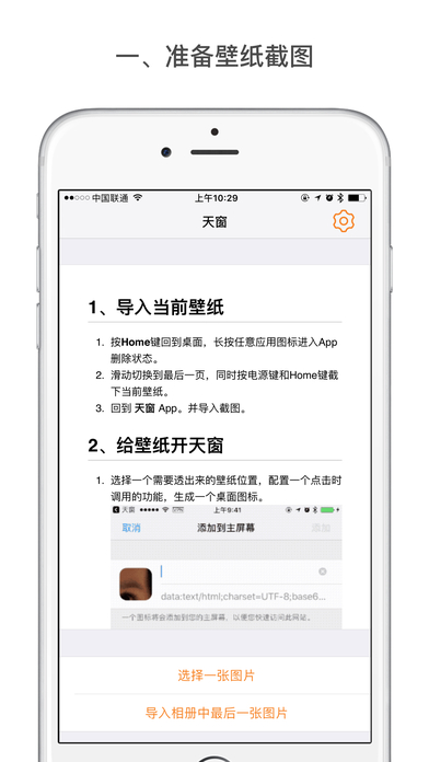 【要解决的痛点】 1、应用的图标不能自由排列。 2、图标会把壁纸上的亮点遮住。 【解决方案】 1、用壁纸上的图标生成桌面图标。 2、将生成的图标排列到合适的位置,壁纸就透出来了。 【玩法】 1、把壁纸上TA的脸露出来,美美的。 2、让应用的图标从下往上排,上面留白。 【其他】 支持URL Scheme,点击图标可以调用第三方App。比如拨打某个电话号码,调用微信扫一扫等。 【注意】整个制作的过程比较复杂,请详细阅读说明,根据手册来使用,否则无法达到满意的效果。 没耐心的用户就不要下载了,免得你后悔。 少数用户反馈图标亮度比桌面亮度高的问题,是因为导入的背景图片步骤不对导致的。要先设置好壁纸,然后长按图标进入删除状态,移动到最后一页,就可以截取一张没有图标的壁纸了,导入这张图片就可以得到正常的亮度了。因为系统在将图片设置成壁纸时会将亮度调低,所以直接选择壁纸原图是不合适的。 一篇更加详细的图文说明: http://appby.us/sunroof/index.html