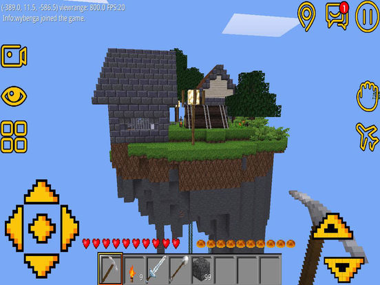 ##联网服务器会不定时更新。玩法和地图数量都会有变化,敬请保持关注! #僵尸和怪物会统治一些领域。在天黑之前请务必找好安身之所!而勇敢的斗士们会选择拿着长剑和他们决一死战! +创造模式下,所有材料免费!所有材料免费!所有材料免费!这点重要的说三次!而且是无限量供应的!唯一的限制就是你的想象力! +数十个本地/在线联网地图。各种风格建筑和及其好玩宏伟的生存地图等待着您的探索!速来膜拜! +生存模式下有怪物和僵尸出现。在联网世界中和来自全世界的玩家共同战斗吧! +支持中文 建造世界是一款经典的像素沙盒类游戏(类似我的世界)。支持生存创造模式和多人联网。在这里,您就是创世神!