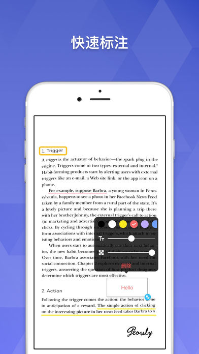 掌上签名是一款可以在iPhone和iPad 上给电子文档快速的签名的App, 省去打印,传真等繁琐步骤,节省您的时间 主要功能: *无限制的永久免费 *轻松手写签名,支持PDF, Word, 图片等任意格式,无需打印,传真 *直接扫描文档,同时也支持PDF外部导入功能 *支持给文档添加标注 *将签名的文件发送出去或者用其他App打开使用 *无需网络,随时随地签名 *支持AirPrint,连接可用打印机打印 你可以用它来签电子发票,合同,协议,等各种文档,签名从未如此简单!