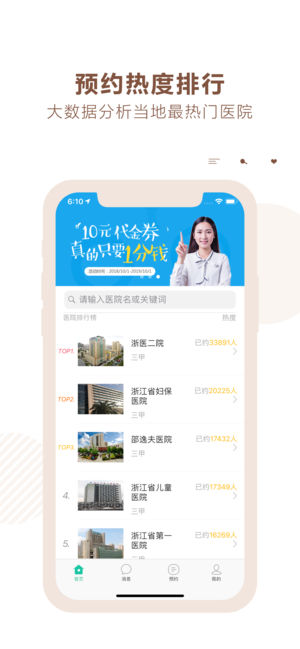 浙江挂号网-浙江三甲医院预约挂号陪诊 浙江挂号网,是为了方便浙江就医的患者,推出的预约陪诊服务应用。基于浙江省三甲医院的历史预约数据,通过大数据技术,推出浙江地区三甲医院热度排行榜。您可以根据医院排行热度,选择预约指定医院的挂号陪诊服务。 挂号陪诊服务说明: 1、所有挂号陪诊服务,均为付费服务。按照陪诊服务的医院、医生和时间不同,价格不同。所有陪诊服务至少需现场陪诊30分钟。 2、提供现场陪诊的服务人员,全部为浙江地区的执业护士,提供医院内陪诊服务前,需出示护士本人的执业护士证件。 3、为提升护士陪诊服务质量,欢迎您在挂号陪诊服务完成后,对护士提供的服务进行评价。 服务质量监督 官方客服电话…
