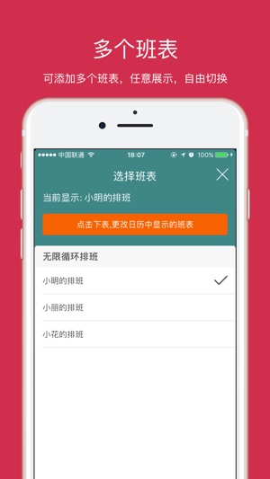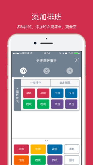 排班 - 上班时间,一目了然。 # 简介 [排班]顾名思义,是一款以日历为基础,记录上班时间的应用。主要针对实行倒班制,上班时间不固定的用户。简单两步设置,便能准确地在日历上排列出上班时间,查看方便,一目了然。不用在台历上拿笔标记,也不用时时去看主管给你的上班安排。让你告别上班时间不确定的痛苦。 # 功能 * 丰富而简洁的日历信息 * Widget 显示,让查看日历和班表更快捷 * 循环排班,一次设置,便能推算出N年班表 * 添加多个班表,自由选择显示,想加多少就加多少 * 自定义待选班次,让排班更自由 * 随意修改已排好的班次,突然的调班也不会错过 * 每月班表统计,本月上了几天班,…