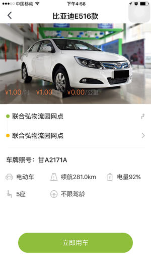 甘肃易享行共享汽车移动客户端app【E享行】主要实现如下功能:附近车辆查询、附近网点查询、电动汽车预约租车、车辆导航、车辆控制、充电点(桩)定位,扫码充电,充电进度查看,以及手机支付(银联、微信、支付宝)等相关功能。注:继续使用全球定位系统在后台运行,可以大大减少电池寿命。