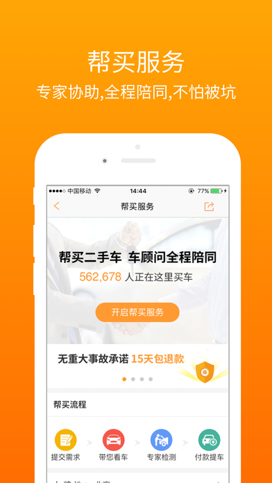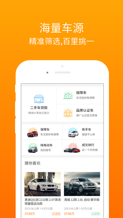 淘车二手车,一个专业成熟的二手车交易平台,提供完善的二手车估价、转让、过户等服务。覆盖全国二手车市场,精选优质信的过的二手特价车源,提供诚信、专业、有保障的车况认证、车辆评估、实用攻略、金融贷款的二手车买卖交易,为超过千万的用户提供优质的二手车服务。 ---------功能介绍--------- 【买车】 1.覆盖全国二手车市场车源,海量车辆信息实时更新,透明的价格交易数据,保障车源放心选购。 2.提供上百项国家专业车辆检测报告、杜绝问题车辆,无事故承诺让您选车无后顾之忧。 【卖车】 1.两种自选高效卖车方式,20秒内发布完成审核,让您轻松迅速卖出高价钱。 2.车辆估值准、认可度高,提供市场售价、风险分析评估等专业估值报告。 ---------特色服务--------- 1.贷款购车- 贷款总额高达43亿,每日超过4000人在线申请,首付低至2成,车贷分期0利率! 2.帮买服务- 实名认证车顾问协助选车,并提供原厂质保、延长质保服务及14天事故车包退的买车一站式服务体系。 3.天天拍车- 价比千家,轻松多卖20%。免费预约, 客服秒回,30分钟内完成车检,3分钟内支付车款,迅速高价卖车。