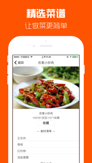湘菜菜谱是一个专为美食爱好者,喜欢下厨房的人士设计的一款简单方便使用的菜谱软件。 特色功能有: 1.菜谱超多,各式湘菜菜谱随意查看。 2.精品菜肴,更有精致美食每天智能推荐。 3.包含各种湖南特色菜,油炸臭豆腐,剁椒鱼头,湘西小炒肉,湘式小炒五花肉,湘味小黄鱼等名菜做法应有尽有。 4.人群分类喜欢川式风味的人群都能在这里找到喜欢的美食菜谱