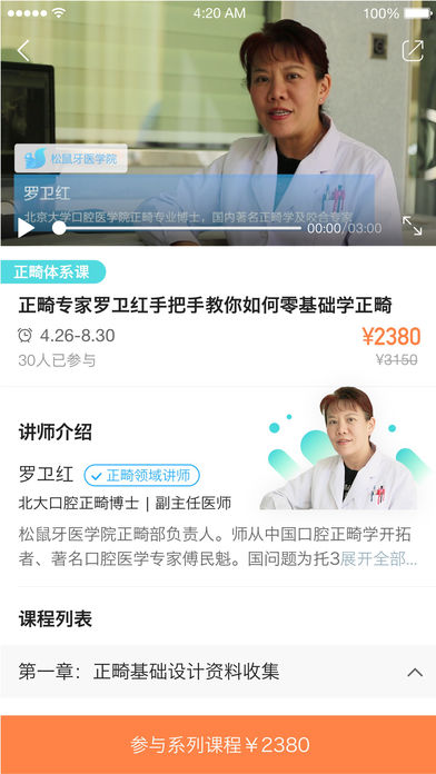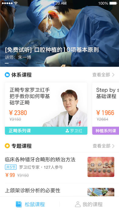 松鼠牙医学院致力于打造国内口腔行业最系统、最权威的继续教育服务平台。平台汇聚了国内各大知名院校的专家讲师,为刚刚毕业准备从事口腔行业的学生,及已经从事口腔行业的牙医们,传道授业解惑。松鼠牙医学院为医生提供体系化的口腔各学科的基础教育、技术专项、以及临床疑难病例分析及讨论等课程。 「体系化课程」 每周一次直播课,循序渐进的学习,有利于知识消化吸收。 「反复听反复学」 所有口腔课程,可以在APP中反复听反复学。课程永久保留,学员可以随时温故。