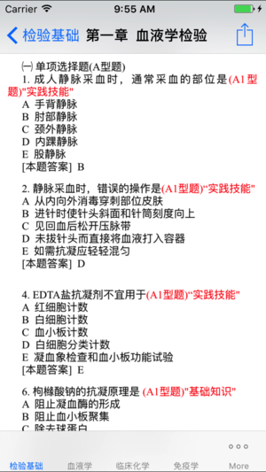 本软件适合于2017年全国卫生专业技术资格考试,临床医学检验技术初级(士)考试专业,专业代码105,精心准备“基础知识”、“相关专业知识”、“专业知识”、“专业实践能力”等4个科目的全部知识点及测试题。 总结的考试内容包括了:临床检验基础、临床血液学检验、临床化学、临床免疫学和免疫检验、微生物学检验、寄生虫学及检验、医疗机构从业人员行为规范与医学伦理学。 关于我们: —微信公众号:woyaotest(我要考试官网) —官方网站:www.woyaotest.cn(我要考试网) —官方微博:http://weibo.com/woyaotest —QQ群:378418630