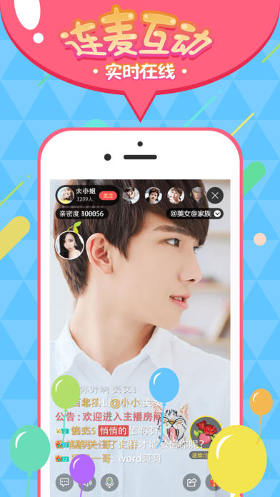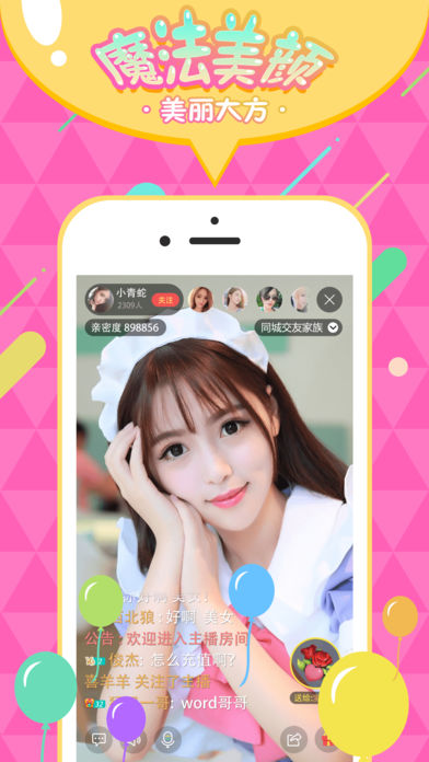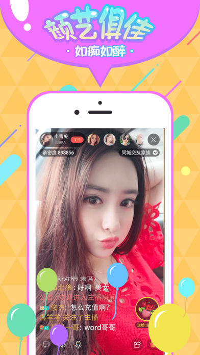 汇聚各路美女主播,万名网红模特、呆萌小可爱、大学生,全天24小时直播不停 连吃瓜群众都说好用的直播软件,赶紧下载一起玩耍吧! 【强化美颜】磨皮、瘦脸应有尽有 【萌物贴图】转眼间变身萌妹纸 【特效礼物】动画效果,礼物停不下来 【欢乐连麦】直播不是一个人的事,你也可以参与 【封神榜单】封神台上会刻上你的名字 【背景音乐】弹琴唱歌说爱你,音乐和浪漫更配哦 【穿越弹幕】想去哪嗨就去哪,只需手指一点 【身份标识】享受高人一等的感觉,自带土豪光环 【隐身进入】你就是传说中的神秘人 【语音聊天】告别打字时代,说话间就把妹子给撩了 人脸技术由相芯科技提供