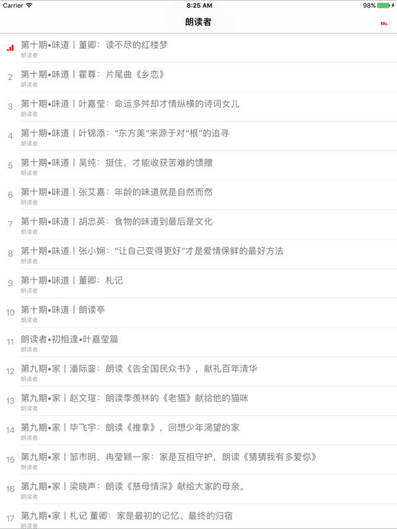 《朗读者》是大型文化情感类节目,由著名节目主持人董卿首次担当制作人; 节目以个人成长、情感体验、背景故事与传世佳作相结合的方式,选用精美的文字,用最平实的情感读出文字背后的价值; 节目旨在实现文化感染人,鼓舞人,教育人的传导作用,展现有血有肉的真实人物情感。