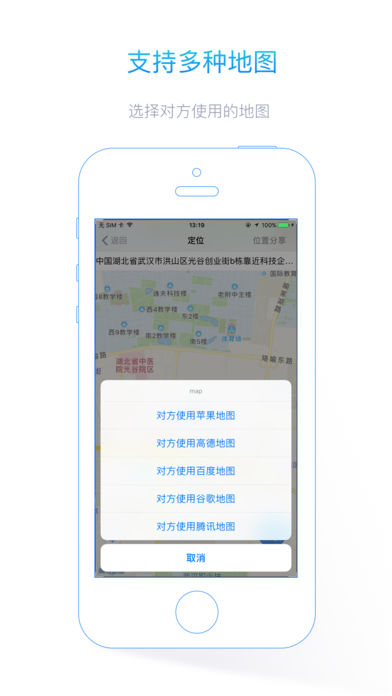 ==最后一天半价!赶快下载吧!== 支持iOS 10! 分享我的位置给朋友,让朋友快速找到我。 最简单的找人软件:逛街,旅游与亲人朋友走丢,与朋友相约见面,一键发送就可以将自己的位置信息告诉朋友了,可以让他们快速找到我 1.打开应用,成功定位我的位置。 2.选择地图模式,普通二位元地图,卫星地图 3.支持多种地图,谷歌,百度,高德,苹果系统自带地图定位 4.多种视图,夜间视图,导航视图,公交视图 5.选择发送的方式:微博,微信,短信等 6.还可以查找附近的公交站牌与附近公交 对方只要点击消息链接,就可以找到我啦。 就是这么简单好友。快来用吧,和好友一起分享找到位置。