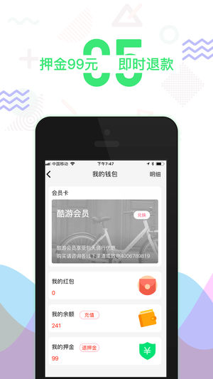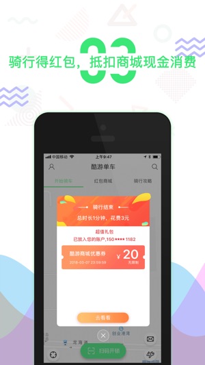 酷游单车,景区休闲旅游单车共享平台,轻松骑行,自在酷游 [休闲骑行] 时尚靓丽的单车设计,美轮美奂的沿途风景,随时随地的拍照分享, 让您尽享休闲旅游的惬意 [专用停车] 高端大气的专用停车位,引人注目的停车标志牌,规范管理,文明出行。 [安全便捷] 优异的单车质量,保障使用的安全 扫码即用的设计,尽显操作的便捷 ^_^温馨提示: APP导航功能会持续使用GPS定位服务,切换至后台时会仍会继续; 相比其他操作会消耗更多的电量,并影响电池续航时间。 note:continued use of GPS running in the background can dramatically decr…