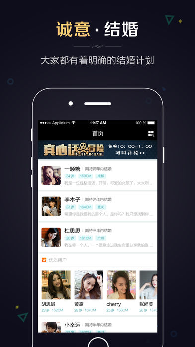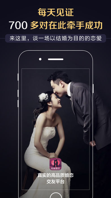 同城婚恋,产品专注于同城婚恋交友服务,上线一周就见证用户了牵手成功,现每天都有有用户在平台脱单成功。 让单身有结婚需求的用户随时随地利用碎片化时间,在移动平台上找到心仪的好对象。平台成立以来的宗旨是,以用户为中心,全心全意为单身人士提供极致、真实、高效的相亲征婚服务,帮助用户遇到心仪的那个TA,并将这一使命一直坚持下去。 【诚意用户】 实名认证:所有用户需要上传身份证进行实名制注册,一张身份证只能被允许注册一次。 学历认证:多方位验证体系,确保用户学历真实。 车辆认证:真实有诚意的认证,具备结婚的硬件条件,杜绝虚假。 房产认证:完善的个人房产认证资料,让对方有家真实的依靠和温暖。 【信息展示】 动态:自我展示的秀场,让更多异性深入了解到彼此的生活趣事,共同分享快乐。 相册:没有限制的相册空间,可上传个人各种个人照,让异性不可忘怀和心动不已。