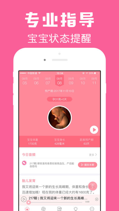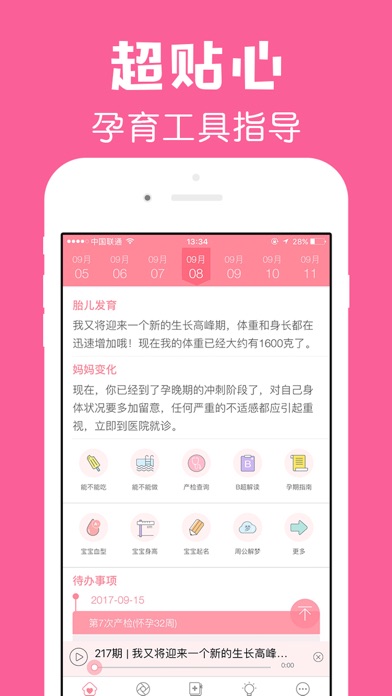 孕期怀孕神器,专业的备孕、怀孕期、育儿助手工具,百万怀孕妈妈的选择! 胎儿发育每天提醒,让你时刻知道腹中宝宝的发育状态。 妈妈变化能让怀孕妈妈知道怀孕每一天的身体变化,轻松应对各种情况。 更有各种方便的(能不能吃、能不能做等)工具轻松帮助怀孕期妈妈在怀孕期就做好各种准备。 怀孕管家的特色功能有: 【超方便】每天独有宝宝变化和妈妈变化提示,让怀孕妈妈更了解宝宝和自己。 【超实用】孕育百科提供各种知识,轻松应用从备孕,怀孕,育儿等个个时期遇到的问题 【超好用】能不能吃、能不能做、等特色小工具应有尽有 【超快捷】更有贴心的提醒每天提醒怀孕妈妈注意事项,更能告知腹中宝宝状态。
