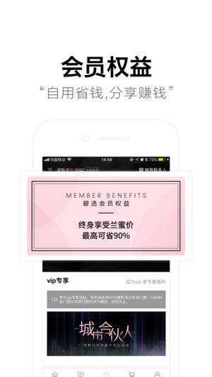 碧选APP是一个集购物、社交、分享、盈利、创业为一体的现代女性综合自助生活平台。欢迎下载,享受更便捷,更高品质的购物与创业体验。 海量精品 碧选商城拥有彩妆、护肤、服饰、配饰、美食、女性日化等海量自主品牌商品。 美丽分享 打造社群中心,开设贴合不同层次独立女性的权威平台培训课程。每个女人都能够切实地在线上互动交流,分享美丽经验,学习前沿知识,寻找伙伴。