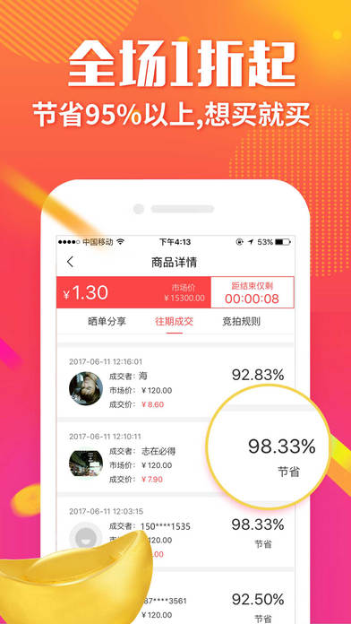【注册立送5元】 0元起拍,想拍就拍 【0元起拍】 全场商品0元起,帮您节省95%以上 【公平公正】 百万用户亲身体验,真实有效