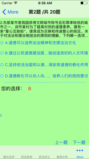 2017年司法考试必备过关神器! 全新司法考试大纲详尽收录!有效助您提升分数,顺利通关! 【核心功能】 1.全真题库 精选历年真题+海量高品质模拟题库 2.精品课程 全新考纲名师精讲视频课程,听课练题轻松通关 3.专家解析 资深名师专家结合考试点,精细化逐题解析 4.错题巩固 独特错题巩固机制,加深记忆真正掌握知识点 5.智能评估 智能算法评估学习成果,定制个性化练习方案