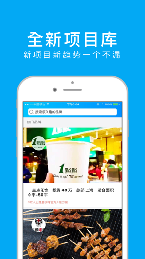创业项目再多,好才重要。帮你挑选创业好项目,创业项目大全是百万创业者投资首选创业APP。 荣誉:苹果Appstore商品指南分类免费榜精品推荐。 -创业项目涵盖最新最主流的所有业态: 轻时尚餐饮、快时尚零售、小而美网红茶饮等最新最火热的创业项目,只有在创业项目大全,才能满足你的所有需求。 -创业项目点评,加盟决策参考必读: 由百万真实创业者、加盟者店主撰写的创业项目一手点评和考察信息,让骗子项目无所遁形,加盟更放心,开店更安全。 -一键直联品牌 一键可与感兴趣品牌直接联系,没有中间商、没有骗子,可直接获取品牌官方提供的投资报价和最符合您需求的开店方案。 -优惠加盟、免费开店经验分享福…