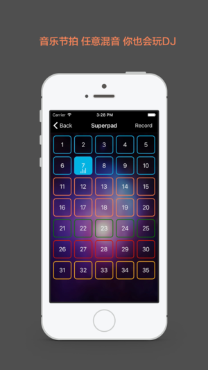 Super drum-一款强大的超级打击垫(超级鼓),大家都在玩的电音垫。 包含多个特色节拍和架子鼓的声音。利用这些特色声音,可以混合出各种音乐。 玩转DJ,你也是节奏大师。 支持强力混音特效、支持一键录屏功能。 版权声明:软件内所有资源均来自爱给(http://www.aigei.com/sound/), 如果涉及任何版权问题,请联系(xujun_ios@163.com)。