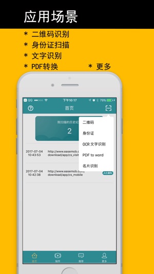 全能扫描王是一款适用于 iPhone、iPad 和 iPod touch 的ocr扫描器!! 拍照自动校准,成像清晰,快速转码,输出高质量的文本信息。文本编辑超级方便,是提高工作效率的必备神器。 超快的响应速度,零流量。 支持二维码制作分享! 支持多种加密算法! 支持扫码历史记录! 支持清空扫码记录!