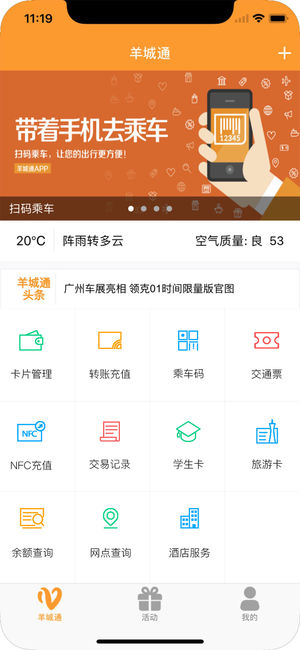 羊城通APP是羊城通官方应用,提供羊城通卡查询和充值,网点查询,公交二维码支付等服务。