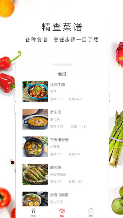 中文菜谱更全,人气更高的美食社区; ----主要功能----- 时令流行:根据不同节气,告诉你应该吃什么,三餐不重样; 榜单推荐:进来看看被两万多人做过的一道菜谱是什么? 人气社区:你尝试发布一道菜谱,会获得最真实的厨友点赞,交流心得提升厨艺; -----创新亮点----- 菜篮子:菜谱所需食材一键加入菜篮子,去菜场买菜再也不会忘记买葱啦! 收藏:3Dtouch 任何地方按一下就可收藏。