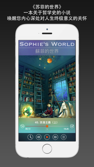 《苏菲的世界》,挪威作家乔斯坦·贾德著,有声珍藏版。 这是一本关于哲学史的小说。 唤醒您内心深处对生命的赞叹,对人生终极意义的关怀。 无广告,无内购,离线随身听。 《苏菲的世界》是挪威作家乔斯坦·贾德创作的一本关于西方哲学史的长篇小说,它以小说的形式,通过一名哲学导师向一个叫苏菲的女孩传授哲学知识的经过,揭示了西方哲学史发展的历程。 《苏菲的世界》,即是智慧的世界,梦的世界。它将会唤醒每个人内心深处对生命的赞叹与对人生终极意义的关怀和好奇。 《苏菲的世界》出版后,即被欧陆许多学院选为哲学教科书。这本书有关哲学史的叙述与传统学院的叙述方法大相径庭,它力求与时代的发展及社会之演变搭上线,哲学因而能够不被架空成学究的观念游戏,无法真正通俗化的哲学至少因此而变得比较可读起来。同时它也提示出了另一个重点,那就是哲学是有用的。 该书自1991年出版发行之后,长期雄踞各国畅销书排行榜第一名,世界上已有35个国家购买了该书的版权。《苏菲的世界》被翻译成90种文字,在欧洲、美洲和亚洲发行了几百万册,一度名列德国和美国的畅销书排行榜之首。