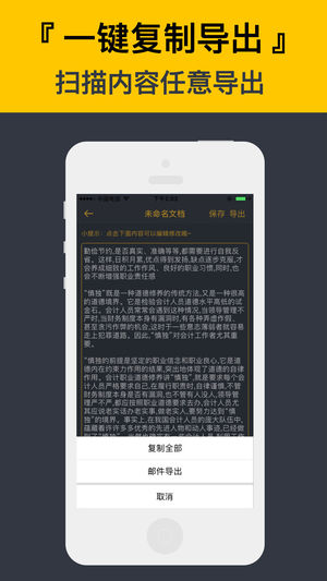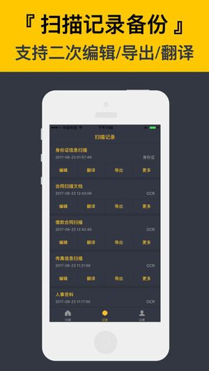 专业OCR识别软件,精准识别、体积小、无广告。 快速识别文档/PDF/图片/证件等信息,一键导出识别结果。 内核采用云端识别技术,响应迅速,准确率高,最大程度还原文档内容。 核心功能 · OCR通用文档扫描 · PDF扫描 · 图片扫描 · 证件扫描 · 内置翻译功能 · 扫描记录备份