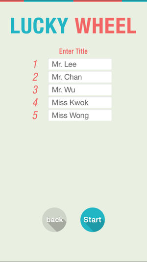 不能在眾多選擇當中作出決定?只要輸入多個選項,然後輕輕轉動輪板一次,这幸运轮就可以助你排除烦恼。运用不同和特别的方式做出决定,可能是你和你的家人或爱人之间有趣的经历。 有時候,你可以利用這個幸運輪與你的家人或朋友一起玩遊戲。輸入“喝下3小杯伏特加”,“親吻在你右手側的人”,“咬一口在你對面的人”等,並旋轉一下幸運輪,這幸運輪讓我與家人過了一個愉快的假日。其實樂趣很容易得到,運用這個幸運輪去造遊戲就是一個選擇。 可能你身邊有很多看起來不重要的事物,但只要你運用你的創意,一切都會變得有價值和意義。這幸運輪是免費的,何不利用這個資源令你的生活方式變得有趣?