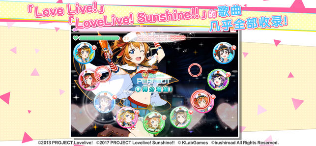 日本超人气音乐节奏游戏登场! 在Love Live!系列中登场的学园偶像们Aqours、μ's,帮助她们开展活动,完成精彩的舞台吧; 配合节奏点击画面,一款轻松体验的节奏游戏! 独特的节奏操作 配合节奏瞄准时机点击画面,引导队伍完成LIVE吧,触发连续完美的话,得分会更高哦; 80多首原创乐曲可选! 创建自己专属的队伍吧 以Aqours、μ's为首,各种学园偶像会登场哦; 将自己喜欢的偶像组成专属的队伍,挑战LIVE吧! 社员育成 让社员练习,获得成长; 收集2张相同的社员进行特别练习的话,会觉醒可爱的服装! 全语音的主线剧情 主线剧情中Aqours、μ's的成员将全数参演,和成员们一…