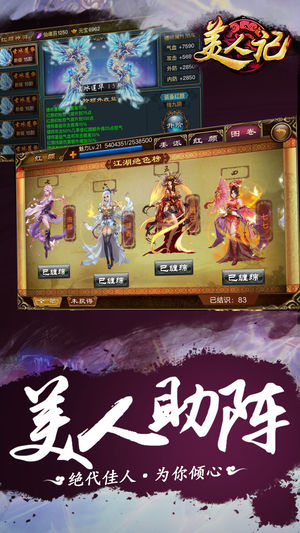 【游戏介绍】 《美人记》是一款武侠题材经典策略手游,独创红颜爆衣缠绵玩法,体验左手江山、右手美人的逆袭江湖! 【游戏特色】 -美艳红颜、美人助拳战! 最强爆衣缠绵玩法,七十位美艳红颜,每晚可翻牌哟! -战将组合、集齐武侠最强阵! 百位武林豪杰,数十种战将组合,更多选择,组成自己的最强战队! -横版格斗、超怒气必杀斩! 经典横屏格斗,炫酷技能,满怒红颜必杀斩,给你无比爽快的战斗体验! -更多玩法,新鲜体验! 夺城帮战、比武大会、掌门之争……更多挑战等你来体验! 【开服福利】 福利一:注册新服即送价值18888元巨额礼包; 福利二:每天登陆送豪礼,第2天即可领取高级紫将,连续登陆更有稀有…
