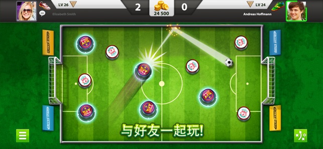 现在是比赛的关键时刻!你的对手持球…...啊!他丢球了!这是奠定胜局的最后机会! 把球对准龙门,射门...GOALLLLL!球进啦! Soccer Stars™ 模拟真实的物理世界,简单上手的游戏玩法,添加了手机版足球游戏的乐趣!每场桌上足球赛竞争如火如荼,快邀你好友一起挑战世界各地的对手吧! 你可以在各国不同的层级展开角逐,也能在线上和世界各地的玩家一决胜负!你也可以使用 Facebook或 Google 帐户登录,向好友发出“PK”请求!此外,你也可以与好友在同一个设备上进行线下游戏!别错过这个炫耀的最佳机会,快来一起展示成为足球传奇的意义,把奖杯抱回家吧! 全新Soccer St…