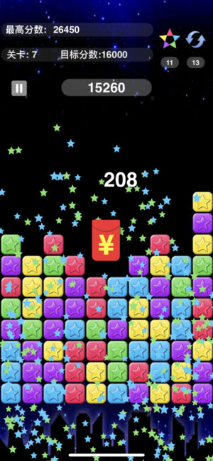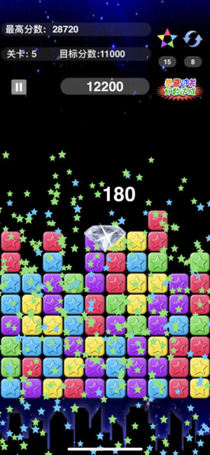 全球最流行,最火爆的消除游戏, 高清的游戏画面和全新的娱乐体验经典归来! 5种全新的星星,绚丽的道具! # 游戏玩法: - 两个或两个以上的同色星星即可消除, 单指操控哦~ - 消除星星的时,随时会出现晶莹宝石噢,点击即可获得,宝石可转化为魔法星或500分等等~ - 没有时间限制, 尽情的思考吧, 但每一关都有过关目标分, 达到才能过关。 - 合理运用魔法道具可帮你刷新更高的记录, 让你有机会登上全球高手榜。 # 小提示: - 同时消除的同色星星越多, 获得的分数越高。 [得分公式:得分 = 同色星星数 x 同色星星数 x 5] - 尽量消除全部的星星, 这将获得额外的积分奖励。 [奖励…